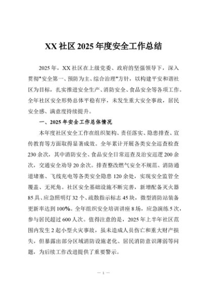 / 【七哥公文】2025年:XX社区2025年度安全工作总结+更多免费公文+VX:QiGeGongWen2024