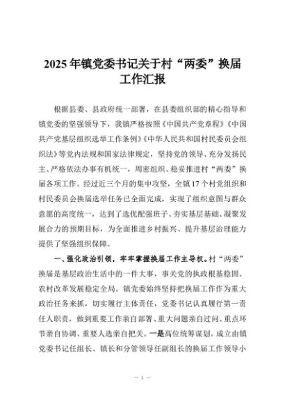 / 【七哥公文】2025年:2025年镇党委书记关于村“两委”换届工作汇报+更多免费公文+VX:QiGeGongWen2024