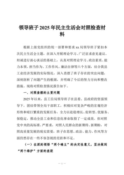 / 【七哥公文】2025年:领导班子2025年民主生活会对照检查材料+更多免费公文+VX:QiGeGongWen2024