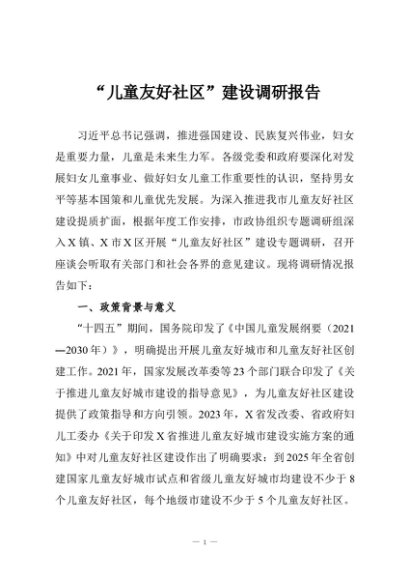 / 【七哥公文】2025年:“儿童友好社区”建设调研报告+更多免费公文+VX:QiGeGongWen2024