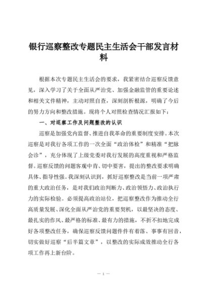 / 【七哥公文】2025年:银行巡察整改专题民主生活会干部发言材料+更多免费公文+VX:QiGeGongWen2024