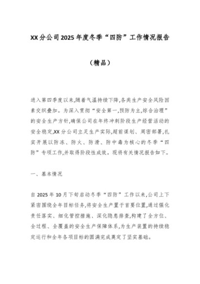 【七哥公文】2025年:XX分公司2025年度冬季“四防”工作情况报告(精品)_副本+更多免费公文+VX:QiGeGongWen2024