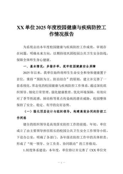 【七哥公文】2025年:XX单位2025年度校园健康与疾病防控工作情况报告+更多免费公文+VX:QiGeGongWen2024