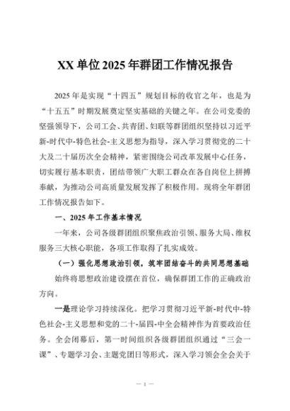 / 【七哥公文】2025年:XX单位2025年群团工作情况报告+更多免费公文+VX:QiGeGongWen2024
