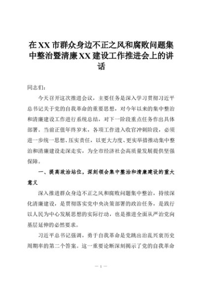 【七哥公文】2025年:在XX市群众身边不正之风和腐败问题集中整治暨清廉XX建设工作推进会上的讲话+更多免费公文+VX:QiGeGongWen2024