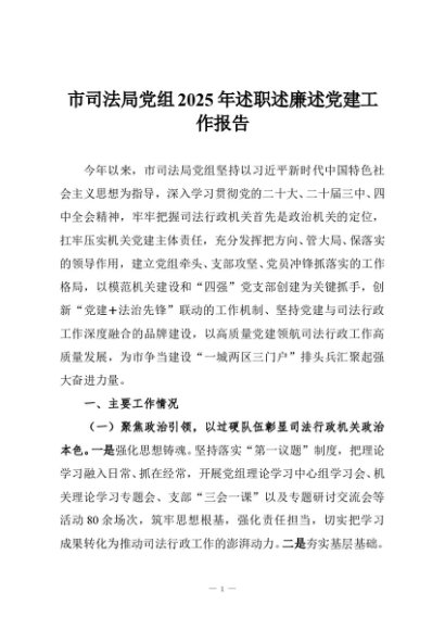 / 【七哥公文】2025年:市司法局党组2025年述职述廉述党建工作报告+更多免费公文+VX:QiGeGongWen2024