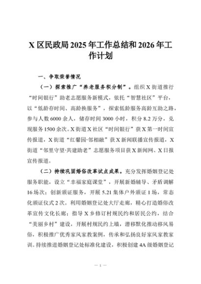 / 【七哥公文】2025年:X区民政局2025年工作总结和2026年工作计划+更多免费公文+VX:QiGeGongWen2024