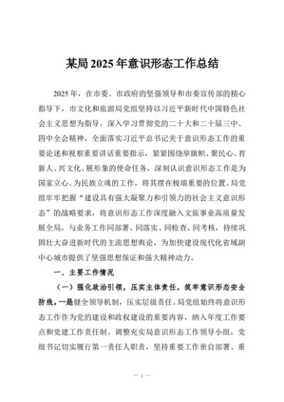 / 【七哥公文】2025年:某局2025年意识形态工作总结+更多免费公文+VX:QiGeGongWen2024