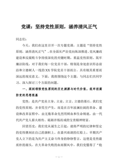 / 【七哥公文】2025年:党课:坚持党性原则,涵养清风正气+更多免费公文+VX:QiGeGongWen2024