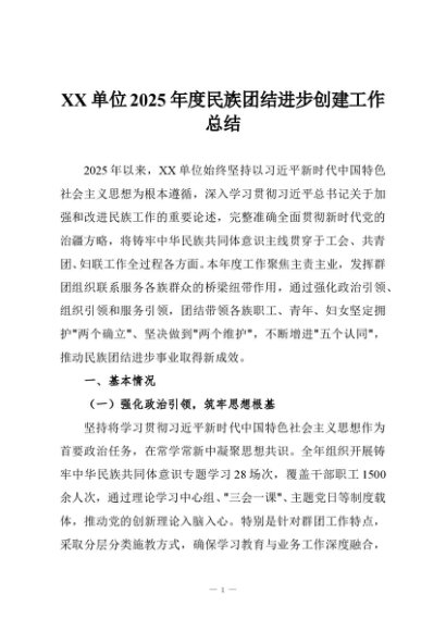 / 【七哥公文】2025年:XX单位2025年度民族团结进步创建工作总结+更多免费公文+VX:QiGeGongWen2024