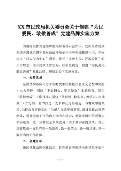 【七哥公文】2025年:XX市民政局机关委员会关于创建“为民爱民、敢做善成”党建品牌实施方案+更多免费公文+VX:QiGeGongWen2024