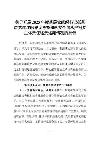 【七哥公文】2025年:关于开展2025年度基层党组织书记抓基层党建述职评议考核和落实全面从严治党主体责任述责述廉情况的报告+更多免费公文+VX:QiGeGongWen2024