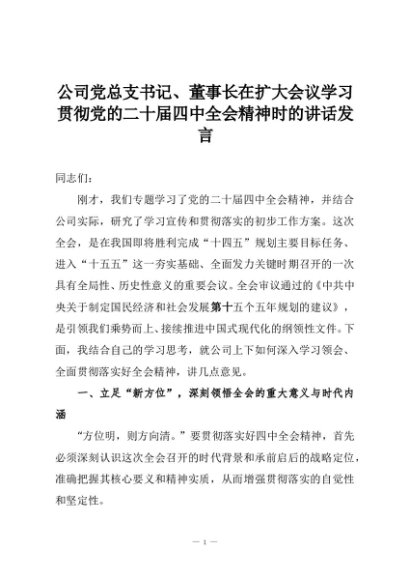 【七哥公文】2025年:公司党总支书记、董事长在扩大会议学习贯彻党的二十届四中全会精神时的讲话发言+更多免费公文+VX:QiGeGongWen2024