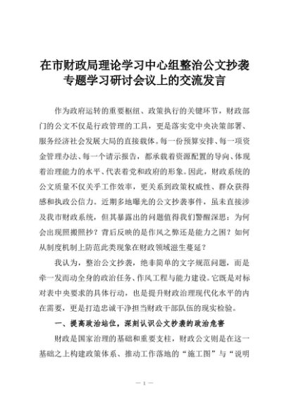 【七哥公文】2025年:在市财政局理论学习中心组整治公文抄袭专题学习研讨会议上的交流发言+更多免费公文+VX:QiGeGongWen2024
