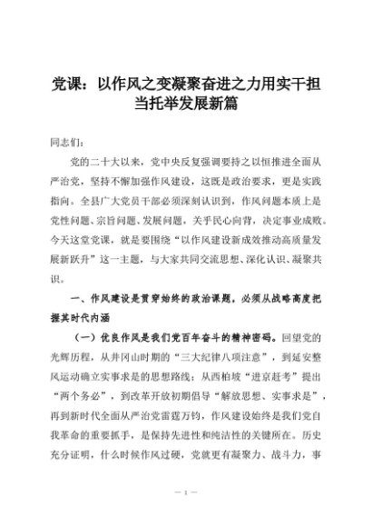 / 【七哥公文】2025年:党课:以作风之变凝聚奋进之力用实干担当托举发展新篇+更多免费公文+VX:QiGeGongWen2024