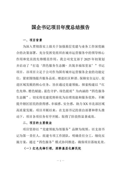 【七哥公文】2025年:国企书记项目年度总结报告+更多免费公文+VX:QiGeGongWen2024