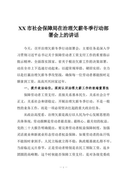 / 【七哥公文】2025年:XX市社会保障局在治理欠薪冬季行动部署会上的讲话+更多免费公文+VX:QiGeGongWen2024