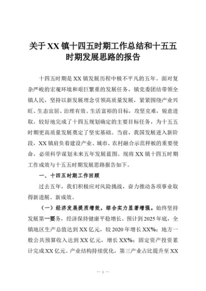 【七哥公文】2025年:关于XX镇十四五时期工作总结和十五五时期发展思路的报告+更多免费公文+VX:QiGeGongWen2024