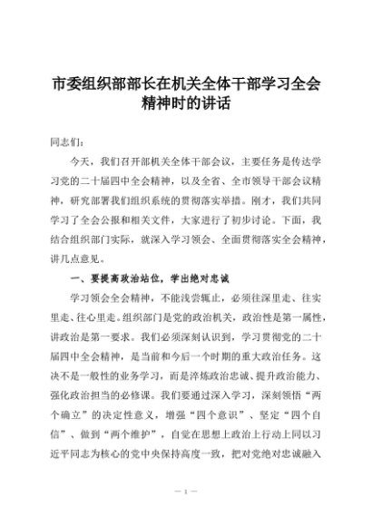 / 【七哥公文】2025年:市委组织部部长在机关全体干部学习全会精神时的讲话+更多免费公文+VX:QiGeGongWen2024