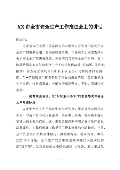 / 【七哥公文】2025年:XX市全市安全生产工作推进会上的讲话+更多免费公文+VX:QiGeGongWen2024
