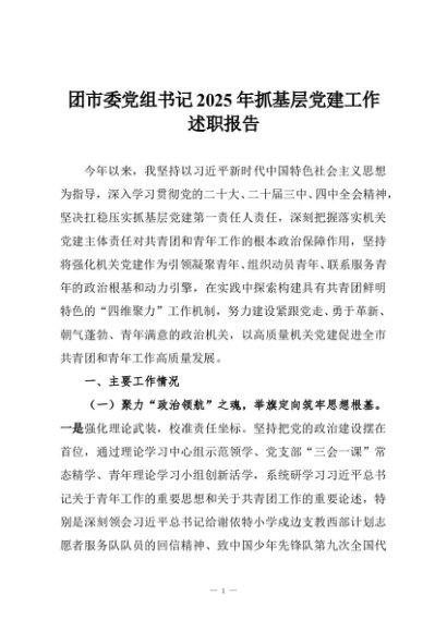 / 【七哥公文】2025年:团市委党组书记2025年抓基层党建工作述职报告+更多免费公文+VX:QiGeGongWen2024