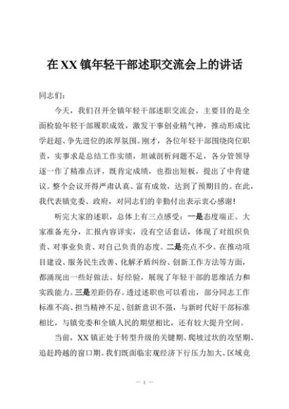 / 【七哥公文】2025年:在XX镇年轻干部述职交流会上的讲话+更多免费公文+VX:QiGeGongWen2024