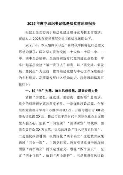 / 【七哥公文】2025年:2025年度党组织书记抓基层党建述职报告_副本+更多免费公文+VX:QiGeGongWen2024