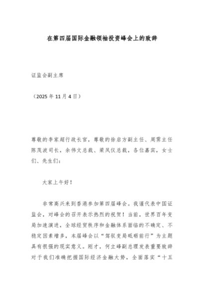 【七哥公文】2025年:在第四届国际金融领袖投资峰会上的致辞_副本+更多免费公文+VX:QiGeGongWen2024