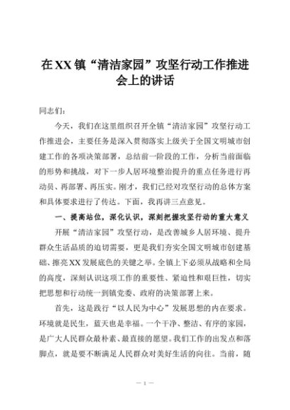 / 【七哥公文】2025年:在XX镇“清洁家园”攻坚行动工作推进会上的讲话+更多免费公文+VX:QiGeGongWen2024