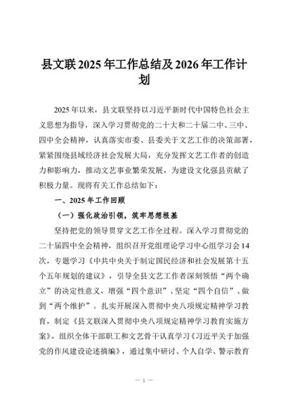 【七哥公文】2025年:县文联2025年工作总结及2026年工作计划+更多免费公文+VX:QiGeGongWen2024