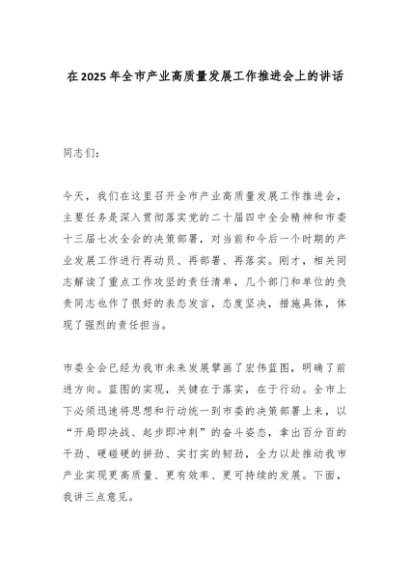 【七哥公文】2025年:在2025年全市产业高质量发展工作推进会上的讲话_副本+更多免费公文+VX:QiGeGongWen2024