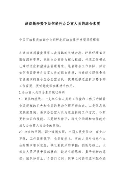 【七哥公文】2025年:浅谈新形势下如何提升办公室人员的综合素质(石油公司)_副本+更多免费公文+VX:QiGeGongWen2024