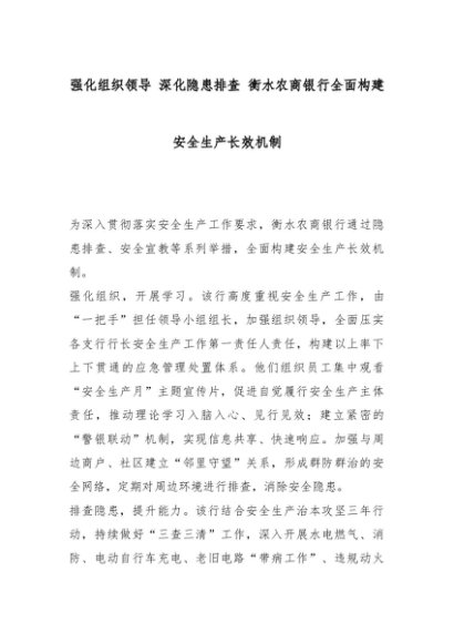 【七哥公文】2025年:强化组织领导 深化隐患排查 衡水农商银行全面构建安全生产长效机制_副本+更多免费公文+VX:QiGeGongWen2024