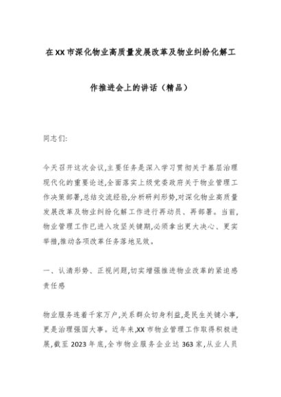 【七哥公文】2025年:在XX市深化物业高质量发展改革及物业纠纷化解工作推进会上的讲话(精品)_副本+更多免费公文+VX:QiGeGongWen2024