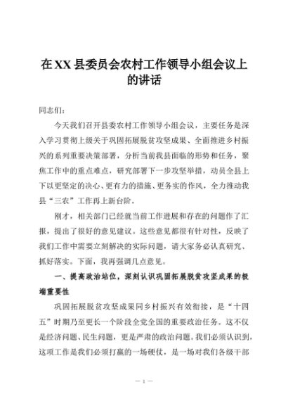/ 【七哥公文】2025年:在XX县委员会农村工作领导小组会议上的讲话+更多免费公文+VX:QiGeGongWen2024