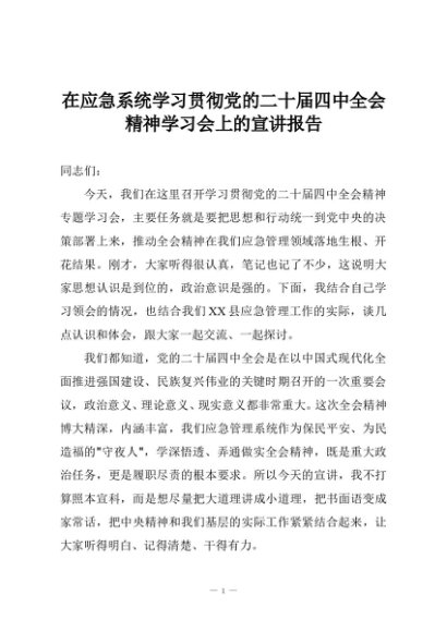 【七哥公文】2025年:在应急系统学习贯彻党的二十届四中全会精神学习会上的宣讲报告+更多免费公文+VX:QiGeGongWen2024