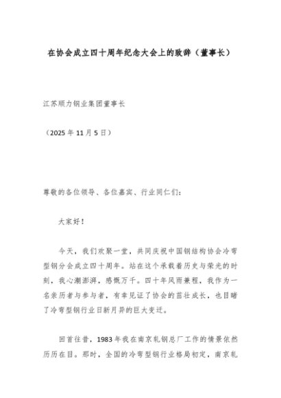 【七哥公文】2025年:在协会成立四十周年纪念大会上的致辞(董事长)_副本+更多免费公文+VX:QiGeGongWen2024