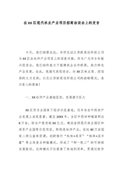 【七哥公文】2025年:在XX区现代林业产业项目招商洽谈会上的发言_副本+更多免费公文+VX:QiGeGongWen2024