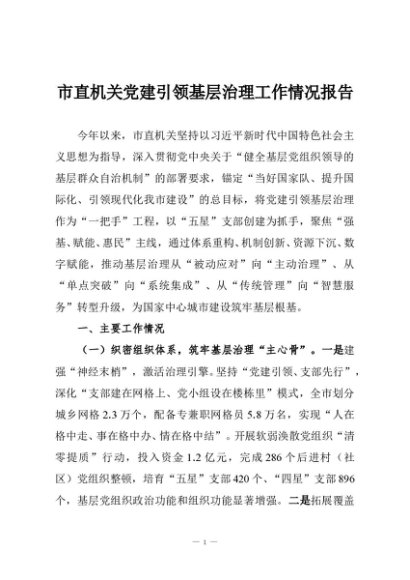 / 【七哥公文】2025年:市直机关党建引领基层治理工作情况报告+更多免费公文+VX:QiGeGongWen2024