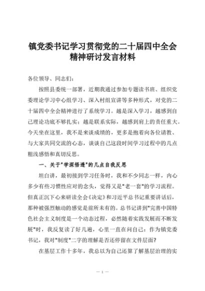 【七哥公文】2025年:镇党委书记学习贯彻党的二十届四中全会精神研讨发言材料+更多免费公文+VX:QiGeGongWen2024