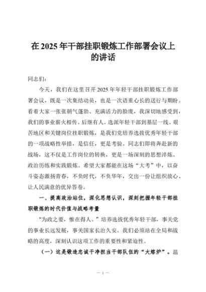 / 【七哥公文】2025年:在2025年干部挂职锻炼工作部署会议上的讲话+更多免费公文+VX:QiGeGongWen2024