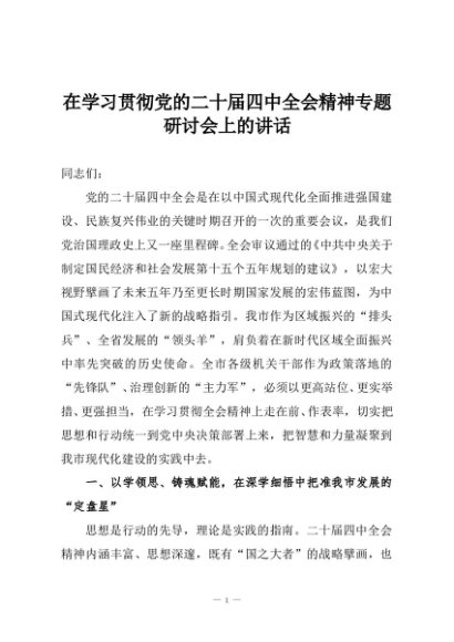 / 【七哥公文】2025年:在学习贯彻党的二十届四中全会精神专题研讨会上的讲话+更多免费公文+VX:QiGeGongWen2024