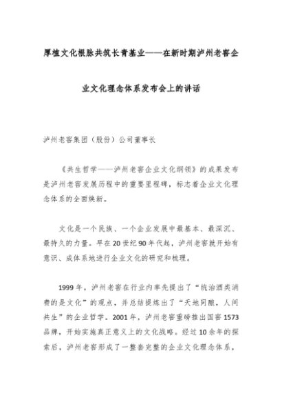 【七哥公文】2025年:厚植文化根脉共筑长青基业——在新时期泸州老窖企业文化理念体系发布会上的讲话_副本+更多免费公文+VX:QiGeGongWen2024