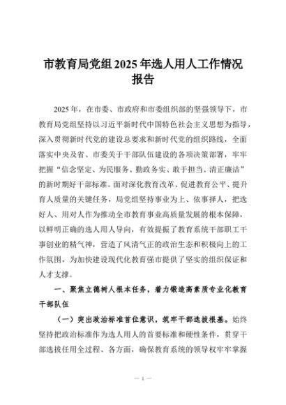 / 【七哥公文】2025年:市教育局党组2025年选人用人工作情况报告+更多免费公文+VX:QiGeGongWen2024