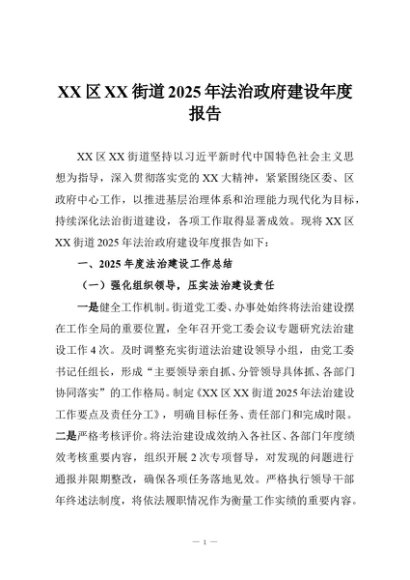 / 【七哥公文】2025年:XX区XX街道2025年法治政府建设年度报告+更多免费公文+VX:QiGeGongWen2024