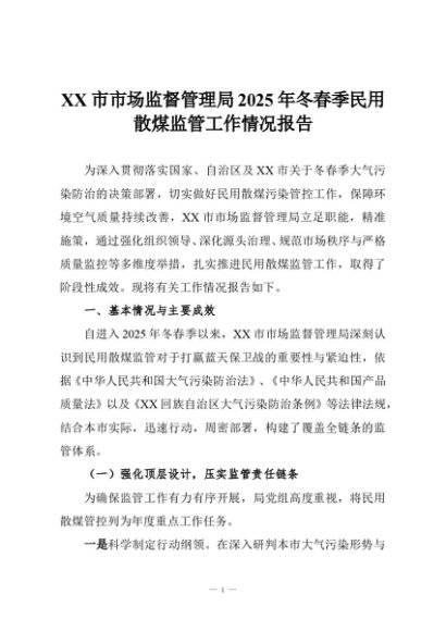 【七哥公文】2025年:XX市市场监督管理局2025年冬春季民用散煤监管工作情况报告+更多免费公文+VX:QiGeGongWen2024