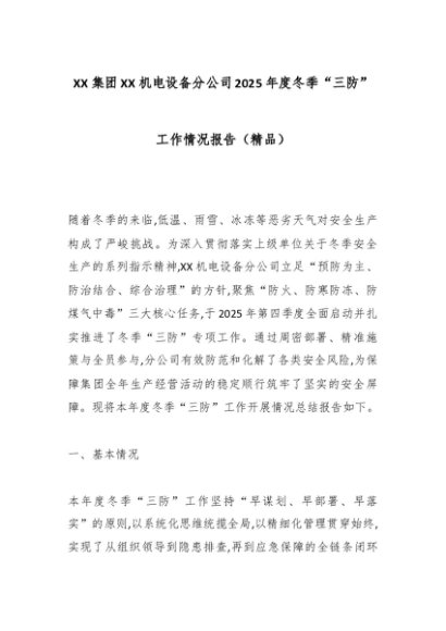【七哥公文】2025年:XX集团XX机电设备分公司2025年度冬季“三防”工作情况报告(精品)_副本+更多免费公文+VX:QiGeGongWen2024