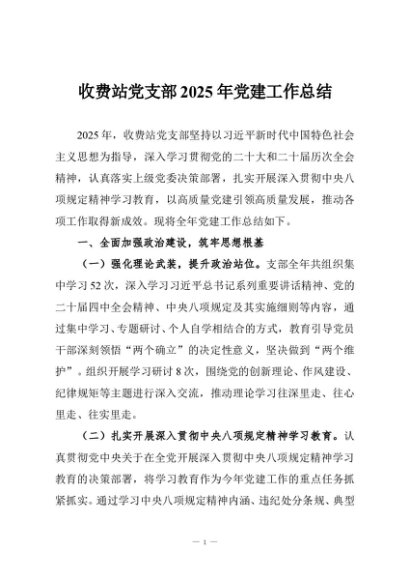 / 【七哥公文】2025年:收费站党支部2025年党建工作总结+更多免费公文+VX:QiGeGongWen2024