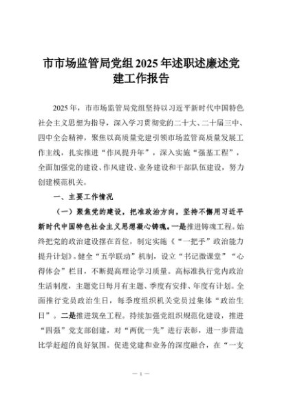/ 【七哥公文】2025年:市市场监管局党组2025年述职述廉述党建工作报告+更多免费公文+VX:QiGeGongWen2024