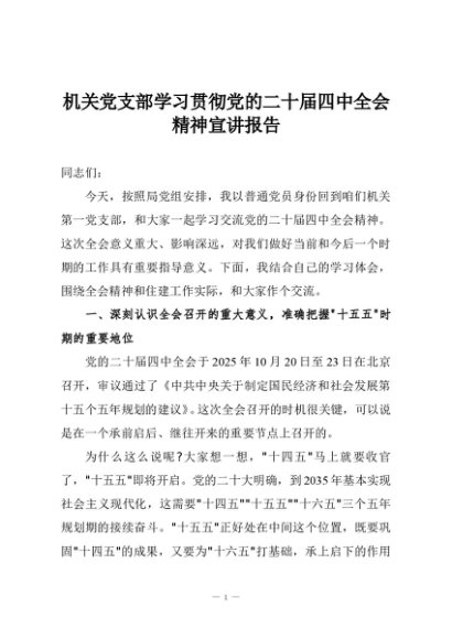 / 【七哥公文】2025年:机关党支部学习贯彻党的二十届四中全会精神宣讲报告+更多免费公文+VX:QiGeGongWen2024